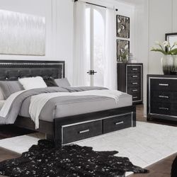 [SPECIAL] Kaydell Black LED Storage Panel Bedroom Set