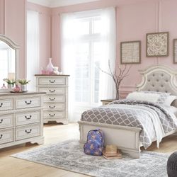 Realyn Chipped White Youth Upholstered Bedroom Set