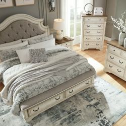 Realyn Chipped White Storage Panel Bedroom Set