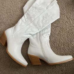 White Smooth Leather Cowgirl Boots 7.5$40Arlington, VA