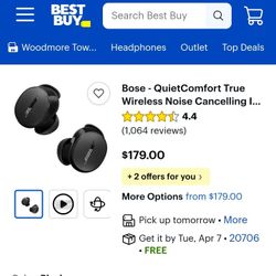 Bose - QuietComfort True Wireless Noise Cancelling In-Ear Earbuds $130Hyattsville, MD