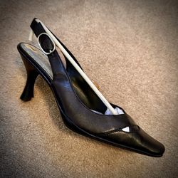 Women’s Black Satin Rhinestone Spool Heel Slingback Pumps Shoes Sz 6.5$25Burtonsville, MD