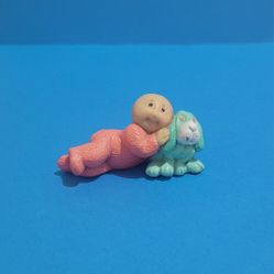 Vintage 1984 Cabbage Patch KIDS Mini Newborn Bald Baby with Dog PVC Figure 2.25”.