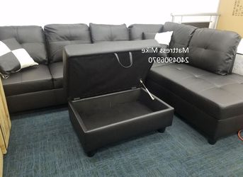 New in box black faux leather sectional with pillows and ottoman special$650Takoma Park, MD