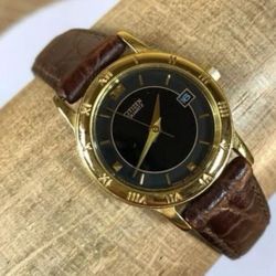 Citizen Quartz Watch – Gold Case, Black Dial, Leather Strap (Unisex)$75Vienna, VA