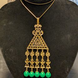 Vintage , Ethnic Gold colored metal beaded pendant On 24 inch Napier chain$15White Oak, MD