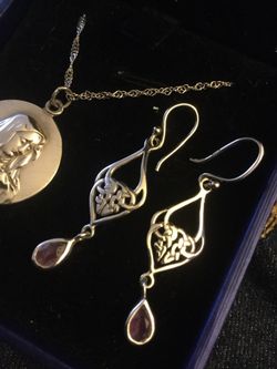 Sterling Silver Amethyst gemstone long earring πΏπ¦πΏ Priced $28 / Silver necklace with round pendant in blue box $35 NEW jewelry / Visit for more π¦$28Alexandria, VA