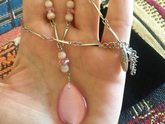 Classy Fashion necklace with bracelet together / New Jewelry Crystals & Pink glass pearls & Silver hearts π$30Alexandria, VA