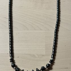 New Natural Hematite Necklace With Intertwined Heart Shaped Pendant 18” Bahamas Souvenir $12Rockville, MD