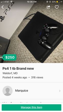 Ps4 1tb And 1 year warranty$240Waldorf, MD