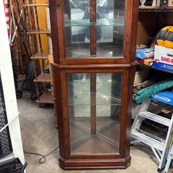Solid wood Corner Cabinet By American Signature. 73 1/2” by 26”. Beveled glass shelves.$75Huntingtown, MD
