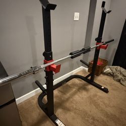 Adjustable squat rack w/ barbell and 25lb, 15lbs, 10lb pair bumper plate set (clamps not included )$200District Heights, MD