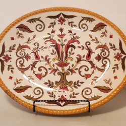 Pier 1 Earthenware ORALIA Oval Platter Plate Scroll Flower Emboss Rope Edge 15"