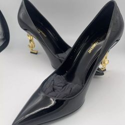 Saint Laurent OPYUM Pointy Toe Black Patent Leather Logo Heel Pumps 38.5 EUR$800Frederick, MD