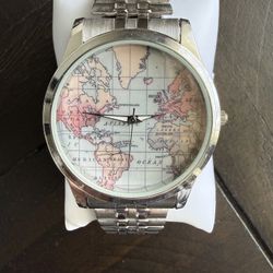 World map men's silver analog watch stainless steel back stretch band$45Smithsburg, MD