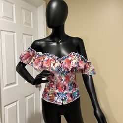 Crop Top Floral Blouse Tee Shirt T-shirt Corset Puff Shoulders Cold Shoulders$17Charles Town, WV