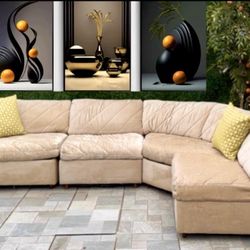 Beige 2 piece Sectional Couch with Leather Frame (Free Delivery 🚚) $650Washington, DC