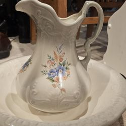 Beautiful vintage ceramic wash basin and pitcher set in a soft ivory glaze with delicate embossed swirl detailing.$85Chantilly, VA