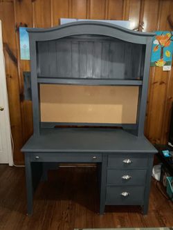 Gray wood office desk & 2 matching book shelves$150Alexandria, VA