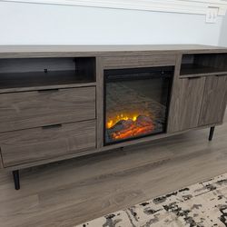 Walker Edison 60-in W Slate Gray TV Stand with LED Flat Wall Electric Fireplace$150White Oak, MD