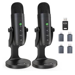 Brandnew Podcast Microphone, Podcast Equipment Bundle for iPhone PC iPad Android, Dual Wireless USB Mic 2.4GHz with Noise Reduction, Tap to Mute, Moni$50Daniels, MD