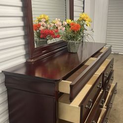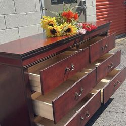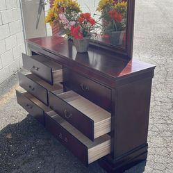 Delivery Available. Solid Wood Long Dresser With Big Drawers, Big Mirror. Drawers Sliding Smoothly $200Springfield, VA