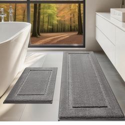 Brandnew (24"x17" + 48"x20", Charcoal Gray) Bathroom Rugs Set 2 Pieces, Ultra Soft Thick Plush Fluffy Microfiber Absorbent Bath Mat, Non-Slip Backing,$35Daniels, MD