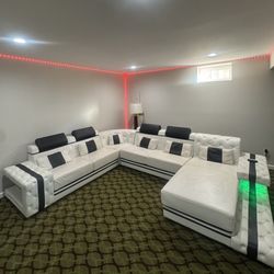Power Reclining Sectional Sofa Set, Creamy White Leather, 2 Recliner for Living Room, with LED Light, Cup Holder, Storage Console$3,000Washington, DC
