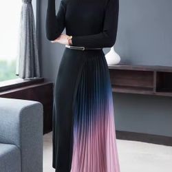 Dalia MacPhee Black Pullover Midi Ribbed Sweater Dress Pleated Ombre Size 2X$55Delmar, MD
