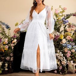 New Simplee Women’s Elegant Lantern Sleeve Ruffle Hem Lace Overlay Dresses$40Delmar, MD