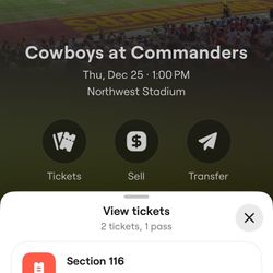 Cowboys @ Commanders Christmas Day With Parking $400Wheaton-glenmont, MD