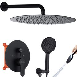 Shower System Matte Black with High Pressure 10 Inches Rain Shower Head and Hand Shower Bathroom Wall Mounted Rain Shower Fixture Rough-In Valve Body $150Silver Spring, MD