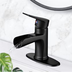 Matte Black Waterfall Bathroom Faucet, Single Handle Single Hole Bathroom Sink Faucet 5.3 Inch Height with Waterfall Spout, 1 or 3 Holes Modern Lavato$40Silver Spring, MD