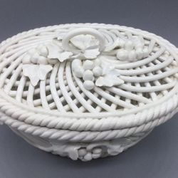 Made in Italy Ornate Belleek Style Glazed Ceramic Candy/Bathroom Box/Trinket Lid NOT BELLEK, just similar style. Stamped: Made in Italy. GREAT CON$42Wheaton-glenmont, MD