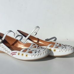 Ballet flats Mary Jane strappy Bronx 38 real leather white floral embroidery Women's shoes US 7.5$14Alexandria, VA