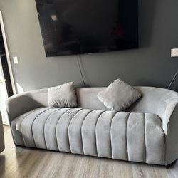 Brand new grey fur like corduroy Sectional Sofa with double chaise and two accent pillows. $849Kensington, MD