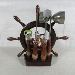 Ships Wheel Nautical Vintage Bartending Drink Utensils 5 Pc. Set