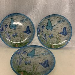Notion Blue Butterfly Botanical Canape Glass Plate Set of 3 Dessert Plate Snack$25Gaithersburg, MD