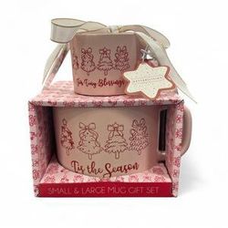 NEW Better Living Small and Large Mug cup Gift Set pink Christmas tree bows tea coffee set pair of 2$14Alexandria, VA