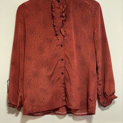 Red High Neck Ruffle Blouse Black Abstract Print Button Front No Size Tag$15Germantown, MD