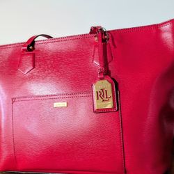 Ralph Lauren Whitby Leather Pocket Tote\Purse - Fall Red (18" X 11" X 7")$20Burtonsville, MD