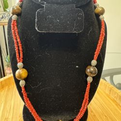 VTG Red Coral Tiger’s Eye Necklace$42Fx Station, VA