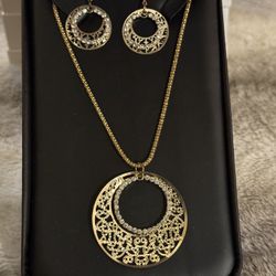 Dark Indigo Faux Diamond Necklace & Earrings $40White Plains, MD