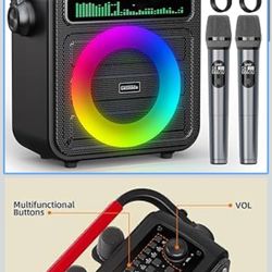 Karaoke Machine 2 Wireless Microphones, Portable Bluetooth Speaker w/PA System for Adults & Kids with LED Lights, Bass/Treble Adjustment, Supports REC$85Severna Park, MD