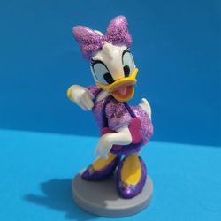 Daisy Duck Disney Glitter Small Figure PVC Toy On Base Collectible Figurine 3.5".