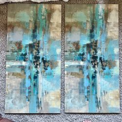 Coastal Concrete (Diptych) — Large Teal + Neutral Textured Abstract Canvas Wall Art (Set of 2)$100Arlington, VA