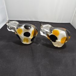 Murano Style Art Glass Bull Figurines Pair Amber Black Gold Aventurine (UA)$45Baltimore, MD