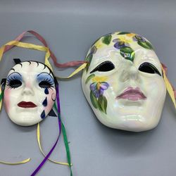 2 Venice Masquerade Faces Ceramic Hand Painted Mask Set Mardi Gras Wall Decor Masks 7” and 4” in height One is signed by Jancy Jacos , New Orlean. $45Kensington, MD
