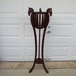 Horse Heads Hand Carved Wooden Farmhouse Plant Stand 51" Tall