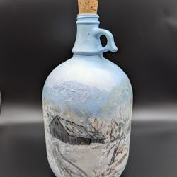 Vintage Hand Painted Glass Gallon Jug SIGNED Covered Bridge Lake Winter Scene$45Silver Spring, MD